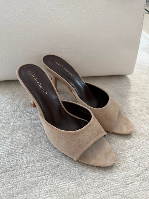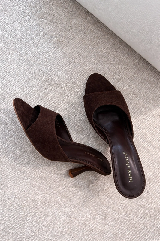 Klapki Camila na obcasie zamszowe czekoladowe