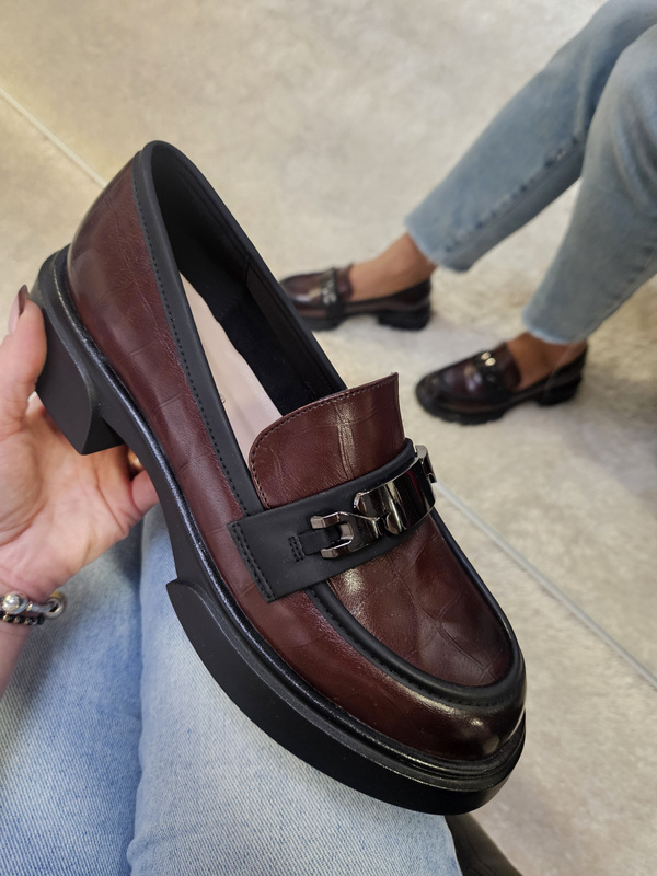 Brązowe Mokasyny na Płaskiej Podeszwie Ozdobione Klamrą ze skóry naturalnej