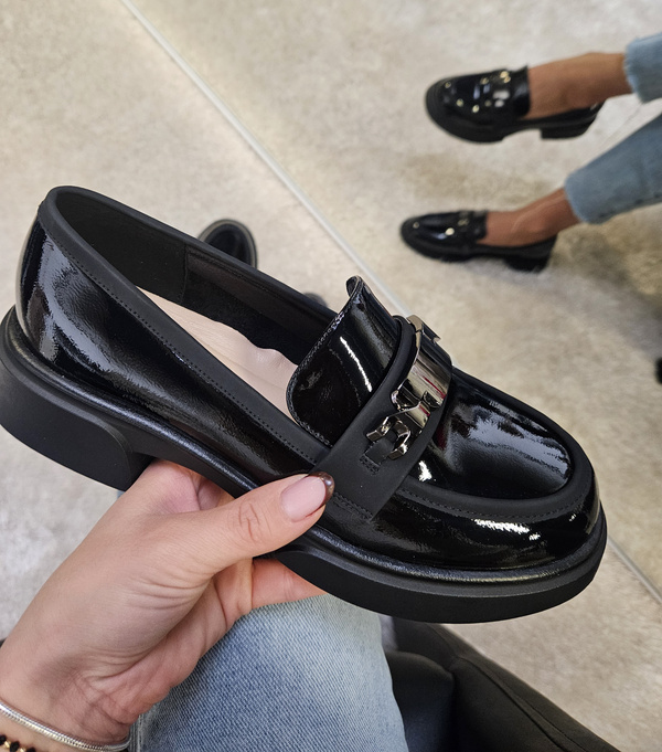 Czarne Mokasyny na Płaskiej Podeszwie Ozdobione Klamrą ze skóry naturalnej