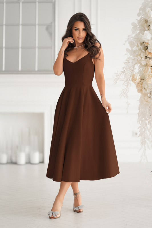 Elegancka SUKIENKA MAXI PREMIUM Kayla z wycięciem na plecach cekinowa czekoladowy