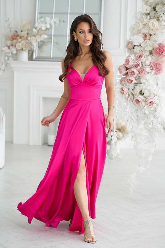 ( ilość produktów: 101 )Elegancka SUKIENKA SATYNOWA Z ROZCIĘCIEM NA NODZE-fuksja