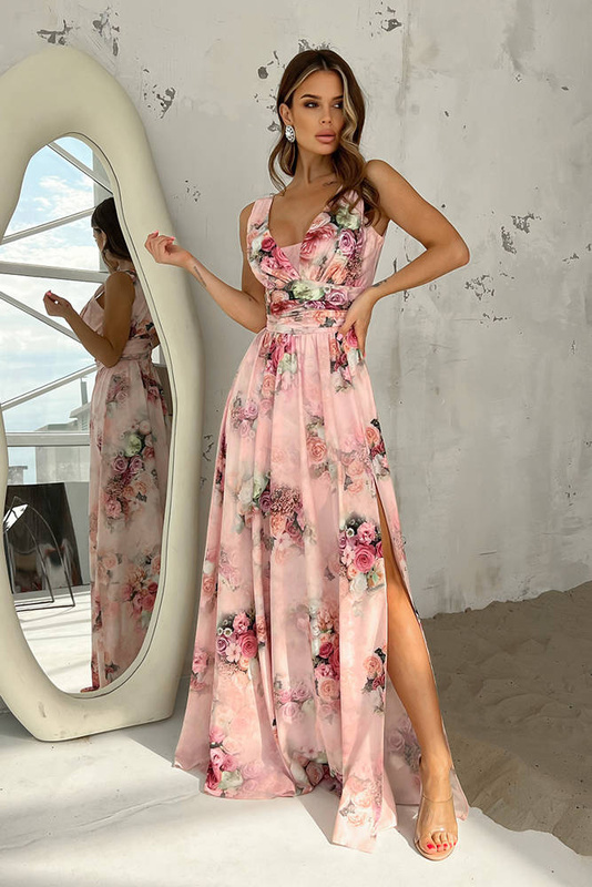 Elegancka MXI SUKIENKA W KWIATY - różowy kwiaty