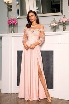 Sukienka Maxi wieczorowa Julia- pudrowy