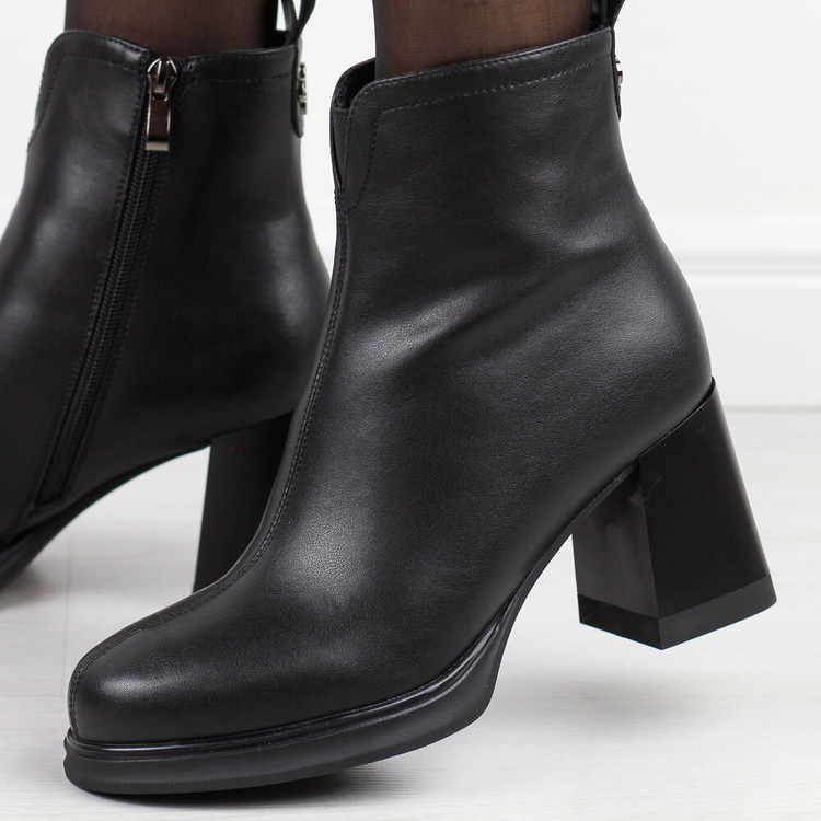 W tym sezonie przedstawiamy najnowszą propozycję - skórzane botki na klocku w kolorze czarnym.