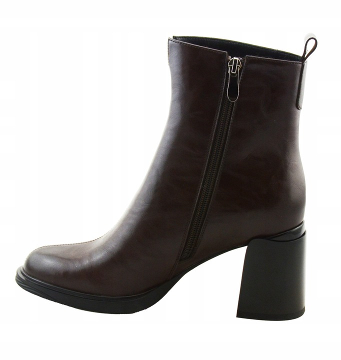 Cholewka buta wykonana została ze skóry naturalnej.Wkładka oraz wyściółka ocieplona przyjemnym w dotyku kocem polarowym zadba o komfort cieplny Twoich stóp w chłodniejsze dni.Klasyczny model z zamkiem wszytym na całej wysokości cholewki, ułatwiający zakładanie i zdejmowanie obuwia. Gładkie klasyczne botki damskie z okrągłym noskiem osadzone na stabilnym 8cm obcasie w typie klocka. Elegancki i ponadczasowy fason sprawia, że botki będą pasowały do każdej zimowej stylizacji.