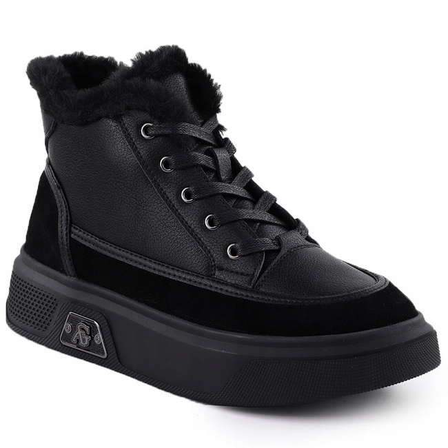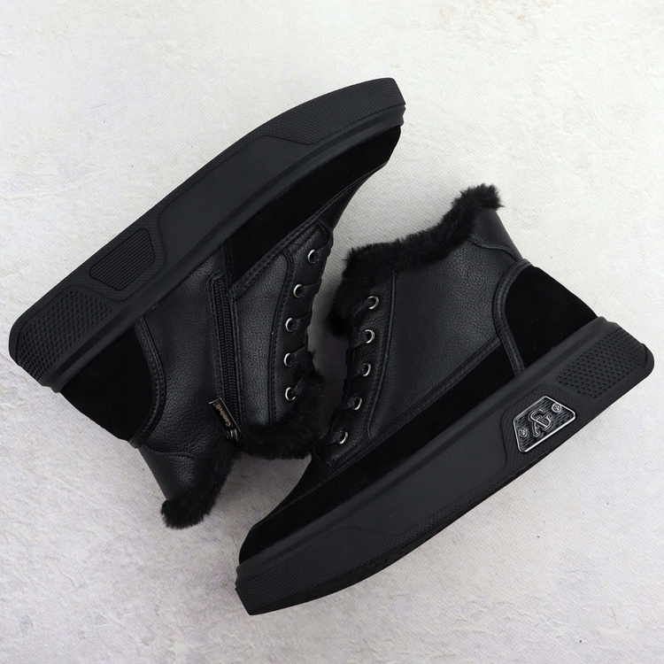 Botki damskie sneakersy ocieplane ze skóry naturalnej czarne