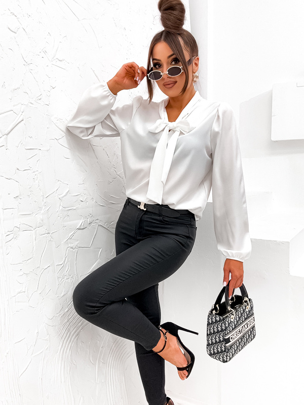 Elegancka Bluzka damska  z kokardą Snowflake biała