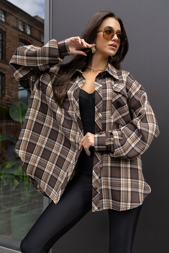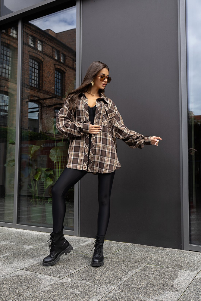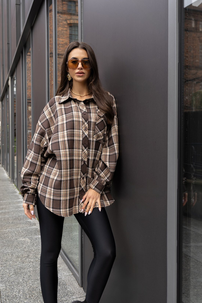 OVERSIZOWA KOSZULA W KRATĘ VINTIGA czekoladowy