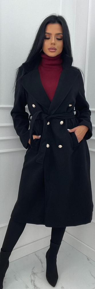 Klasyczny Wiązany Płaszcz Damski Rosi z guzikami - czarny