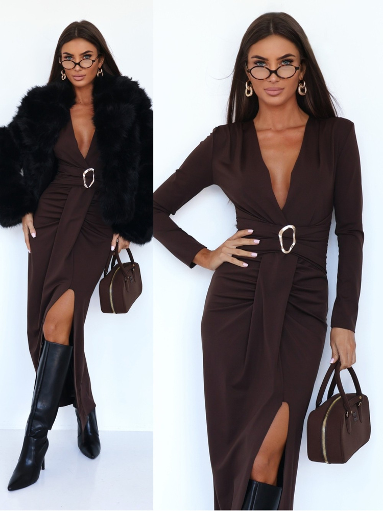 ELEGANCKA DOPASOWANA SUKIENKA MAXI Ava czekoladowa