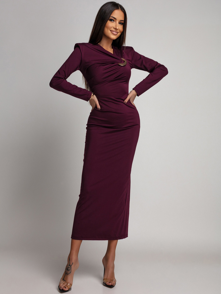 ELEGANCKA SUKIENKA MAXI ZE ZDOBIENIEM Daisy bordowa