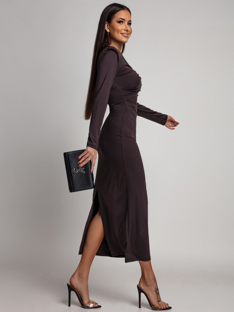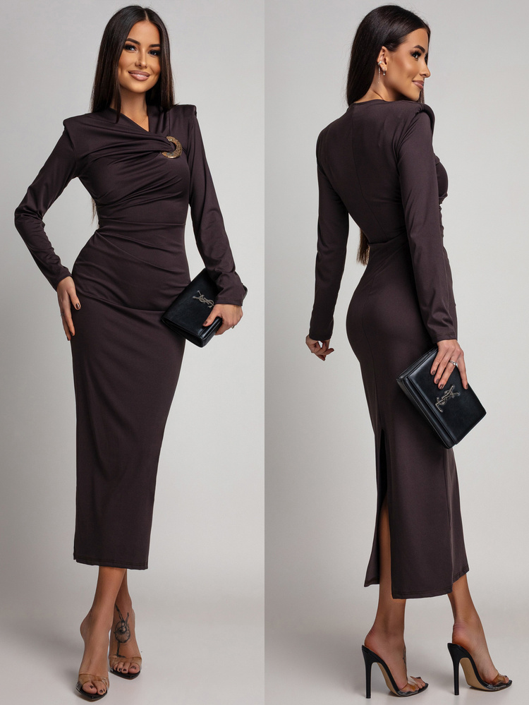 ELEGANCKA SUKIENKA MAXI ZE ZDOBIENIEM Daisy czekoladowa