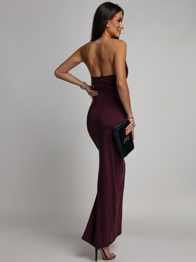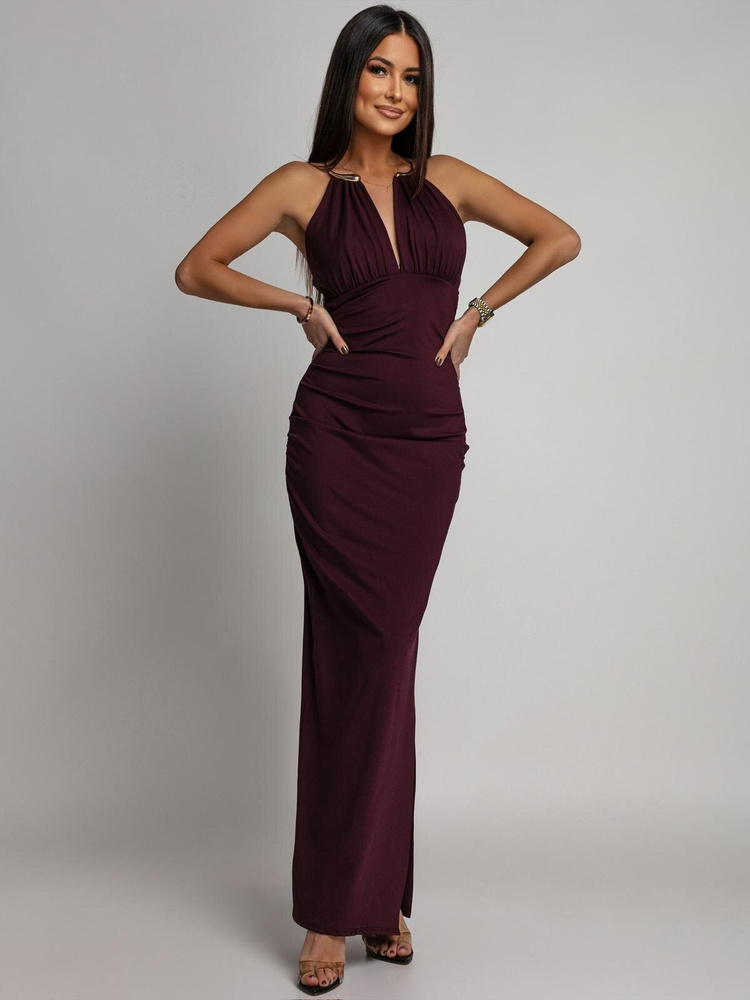 ELEGANCKA SUKIENKA MAXI ZE ZDOBIENIEM Yoko bordowa