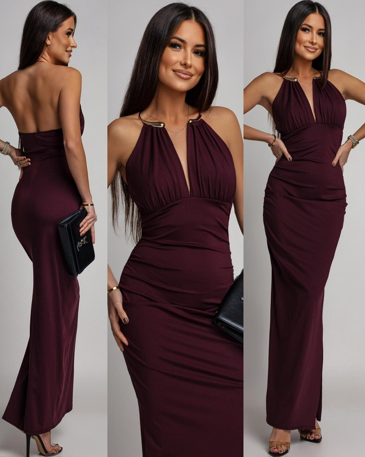 Sukienka o długości maxi to ponadczasowy element kobiecej garderoby.Dopasowany fason z elastycznym materiałem atrakcyjnie podkreśli atuty figury.Sukienka w eleganckim wydaniu sprawdzi się na liczne okoliczności.Wykonana z elastycznego materiału, który efektownie podkreśli atuty figury. Sukienka z chokerem sprawdzi się doskonale na wyjątkowe okoliczności. Idealnie zaprezentuje się z obuwiem na obcasie.