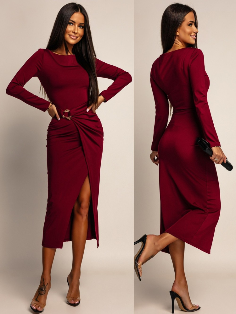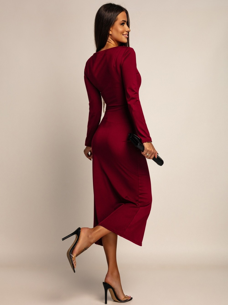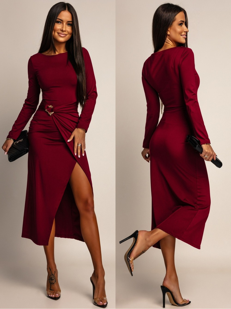 ELEGANCKA SUKIENKA MIDI ZE ZDOBIENIEM Ananya bordowy