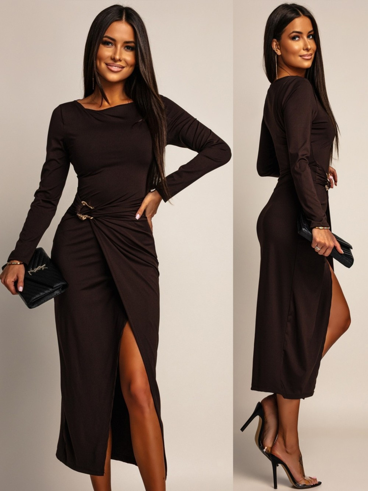Sukienka o długości midi to ponadczasowy element kobiecej garderoby.Dopasowany fason z elastycznym materiałem atrakcyjnie podkreśli atuty figury.Sukienka w eleganckim wydaniu sprawdzi się na liczne okoliczności.Wykonana z elastycznego materiału, który efektownie podkreśli atuty figury.Zabudowany dekolt w łódkę stanowi uniwersalny wybór dla każdej kobiety.Wyróżnia się dołem szytym na zakładkę i biżuteryjnym zdobieniem w talii.