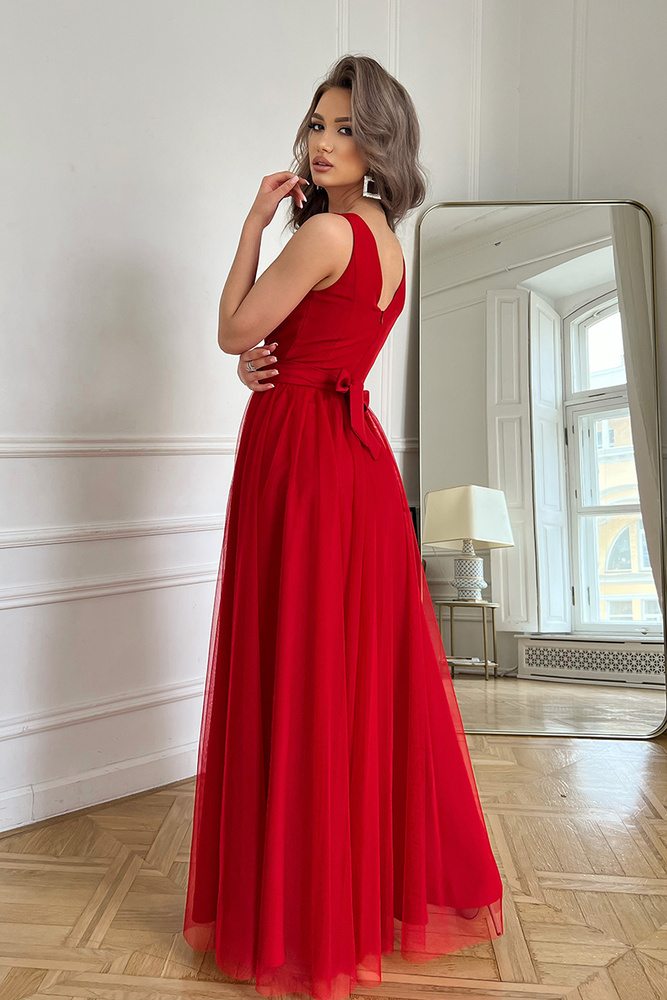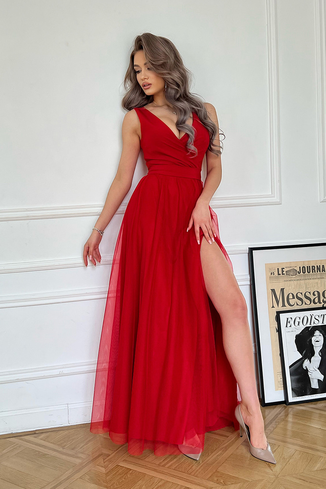 DŁUGA SUKIENKA Z WYCIĘCIEM NA NODZE- czerwony