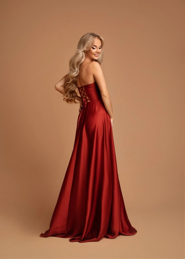 Elegancka MAXI Sukienka satynowa EMMA - ceglasty