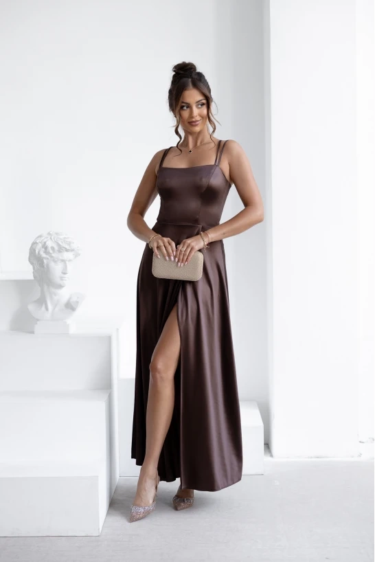 ELEGANCKA SUKIENKA MAXI Satynowa Nel- czekoladowy