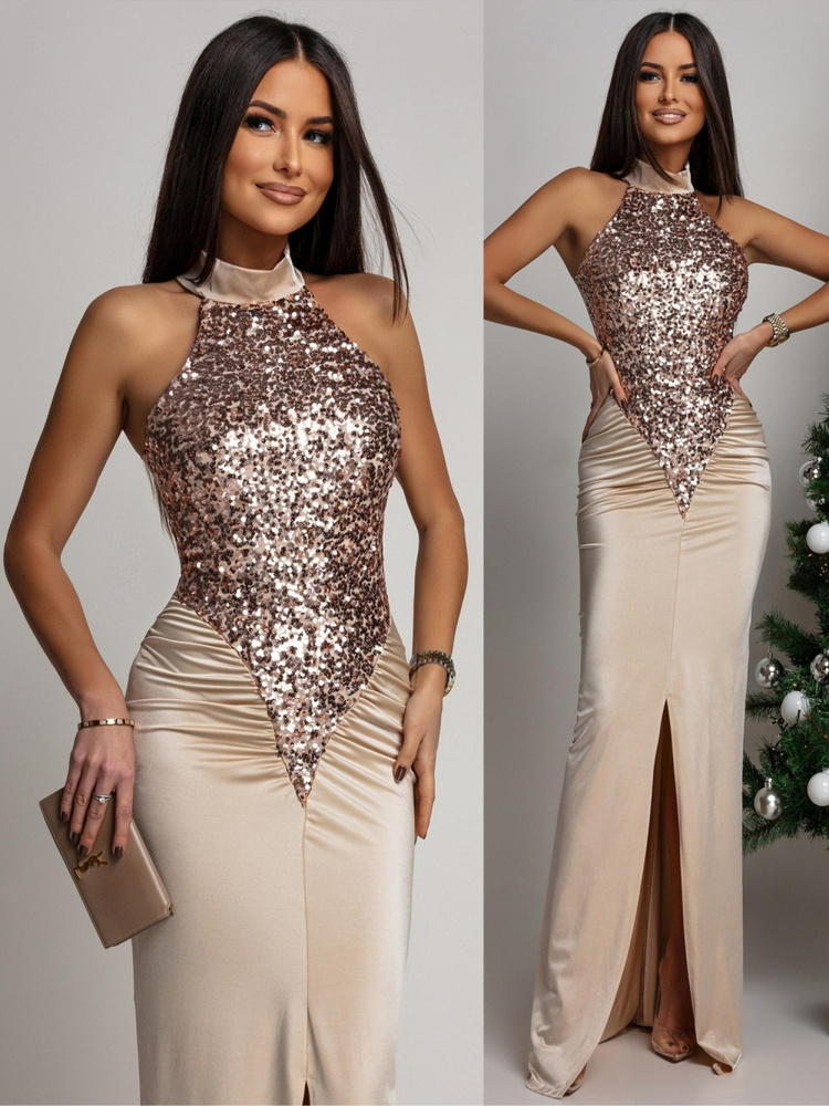 ELEGANCKA SUKIENKA MAXI Z CEKINAMI Iman Złota