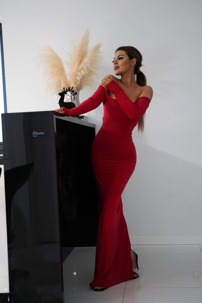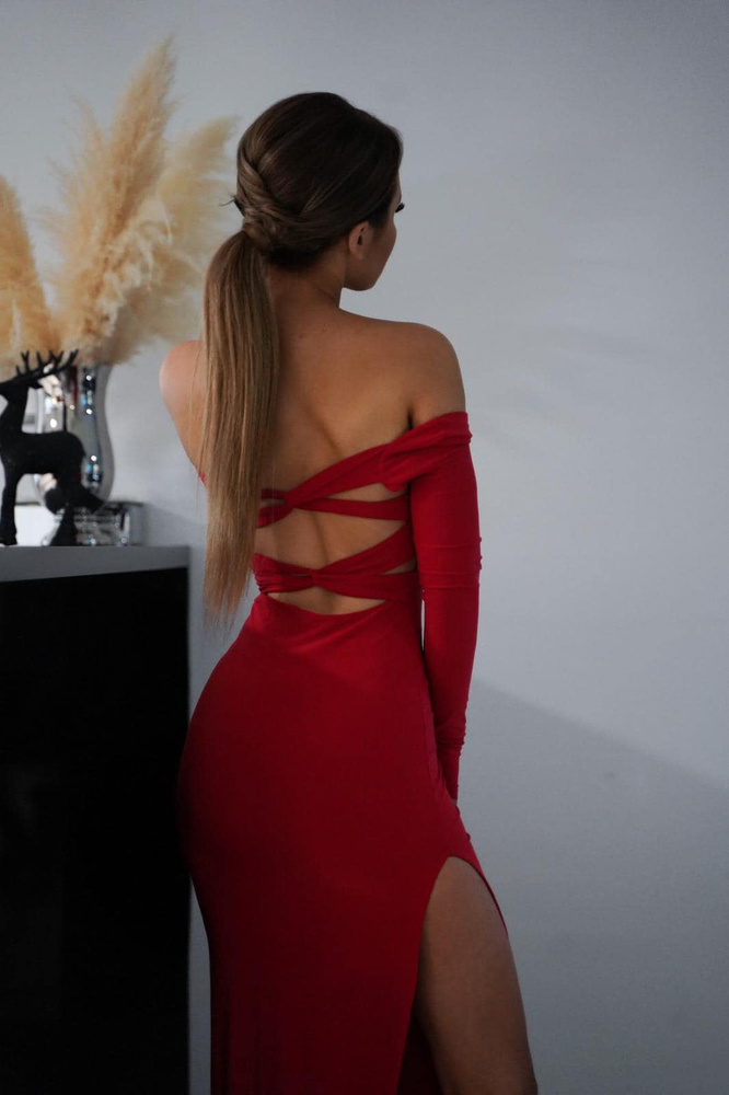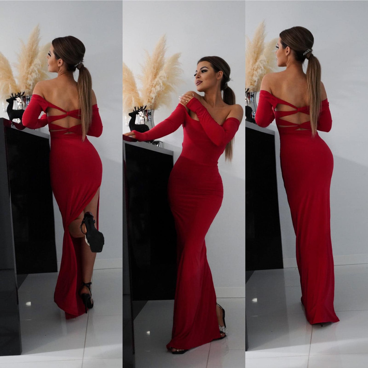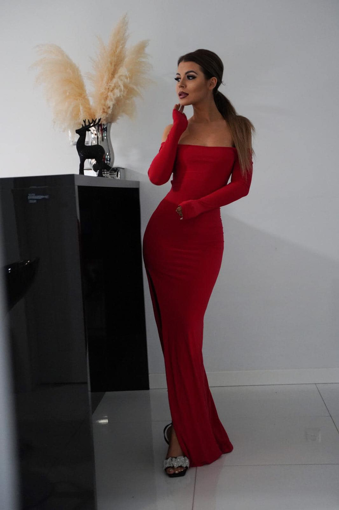 Elehancka Sukienka Glow maxi wieczorowa-czerwony